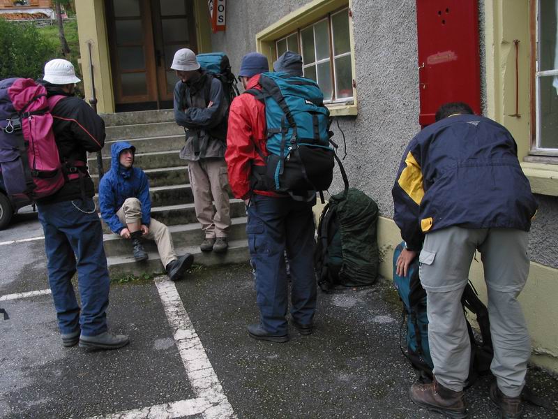 Von dort mit dem Alpentaxi nach Gruben. Es regnet.