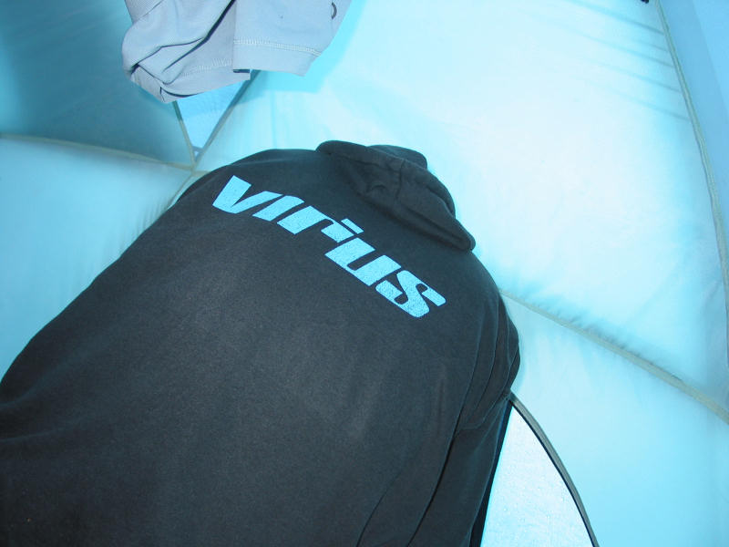Die Regenpause wird mit einer Siesta im Zelt