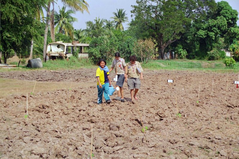 Eine Thai mit Shark T-Shirt. Landwirtschaft funktioniert hier auch anders.