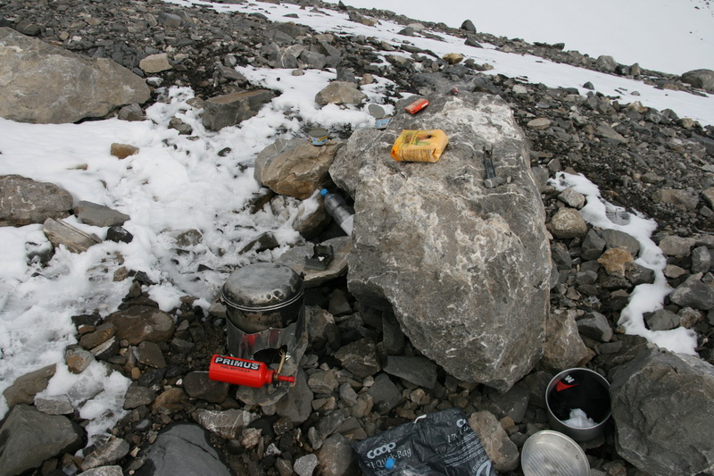 Die Feldküche. Alleine mit dem Notkocher waere das Wasser wohl jetzt noch kalt *g*.