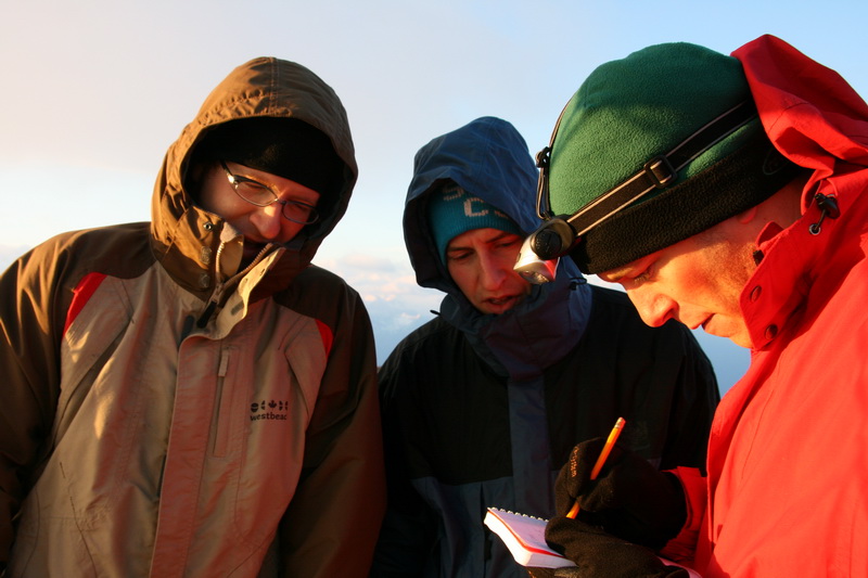 Ulti schreibt etwas ins Gipfelbuch.