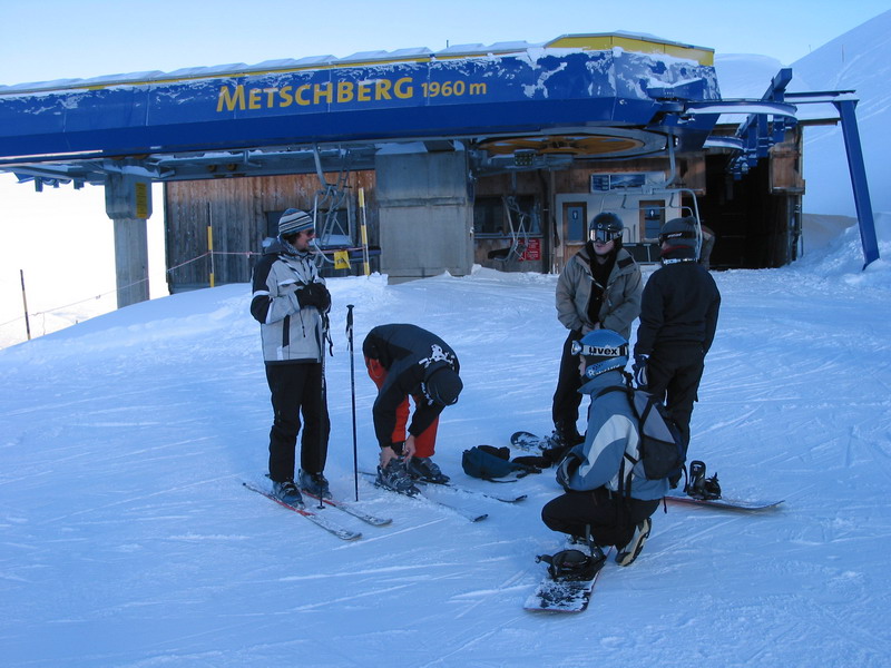 Endlich auf der Piste. Die erste Abfahrt im Neuschnee lockt.