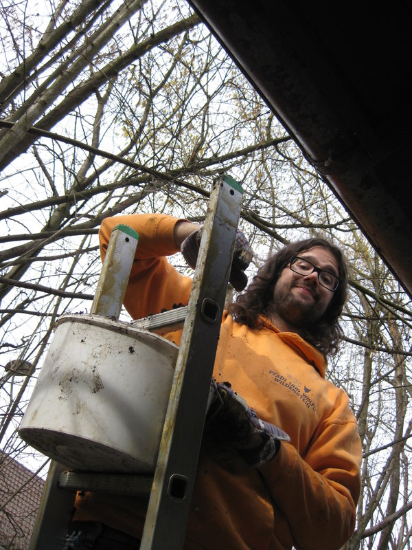 Gleichzeitig räumte DaVinci draussen den Dach-Känel, damit das Wasser wieder abfliessen kann. (Es hatte sich bereits Humus gebil