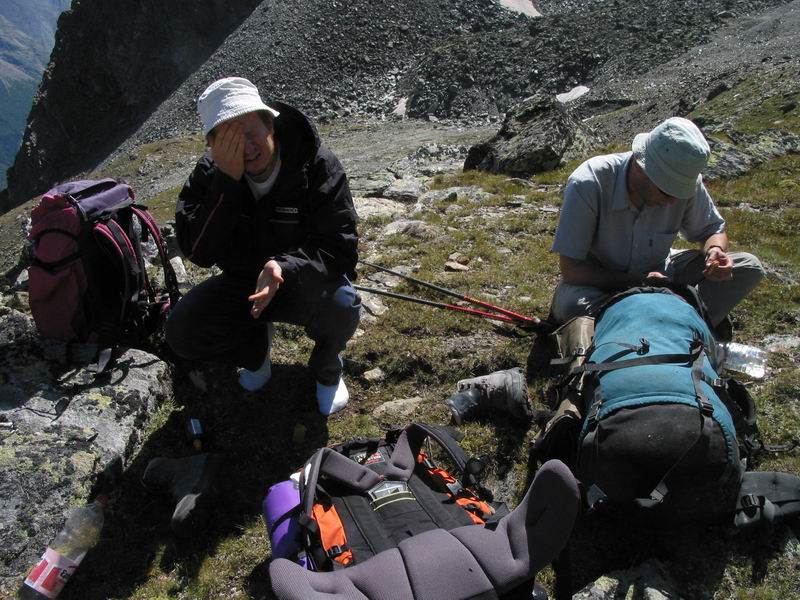 Bei der kurzen Mittagsrast sind wir schon leicht gezeichnet von den Strapazen.