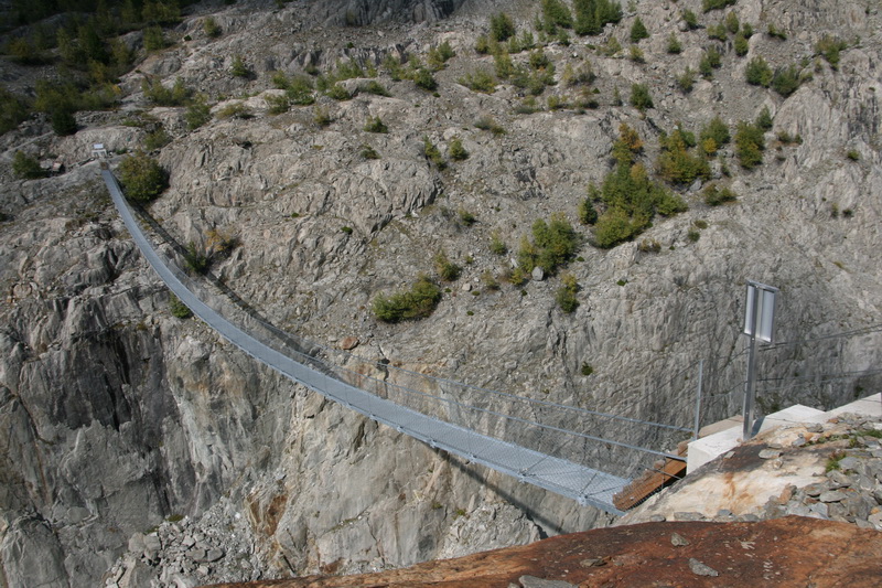 Die Hängebrücke. Beinahe so spektakulär wie eine Gletschertraversierung.