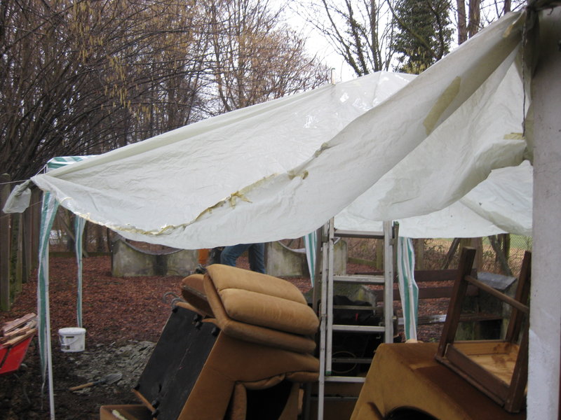 Das Inventar musste unter einer Blache vom Regen geschützt werden.