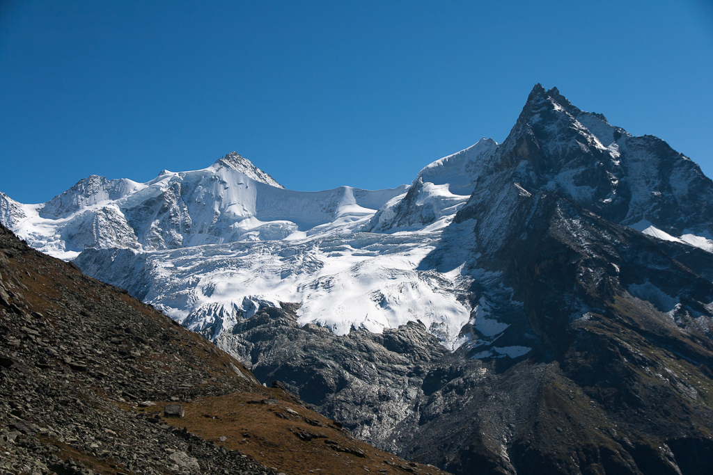 Zinalrothorn und Weisshorn mit Gletscher.