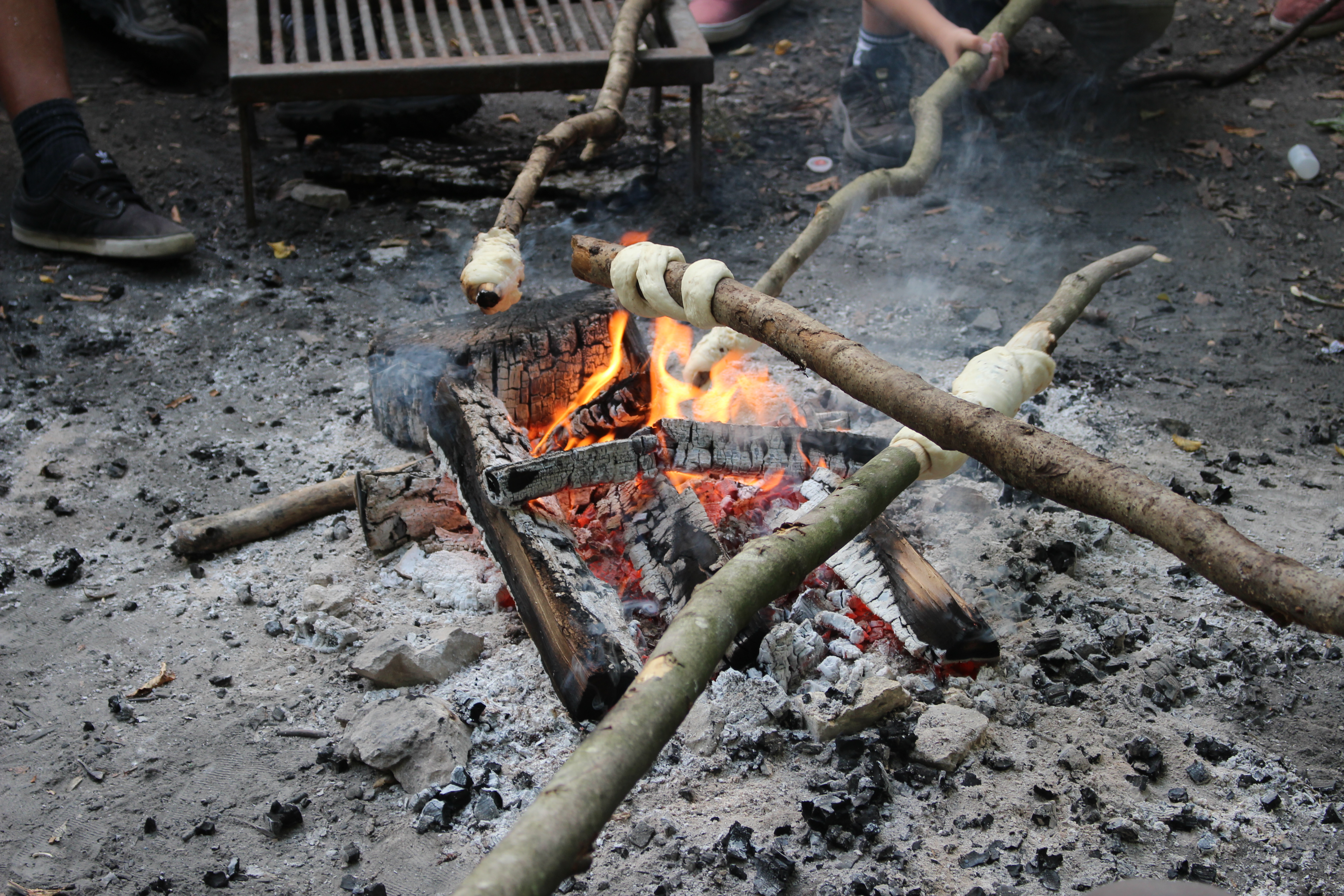 Abschliessend bräteln wir Schlangenbrot aus den von den verschiedenen Posten gesammelten Zutaten.