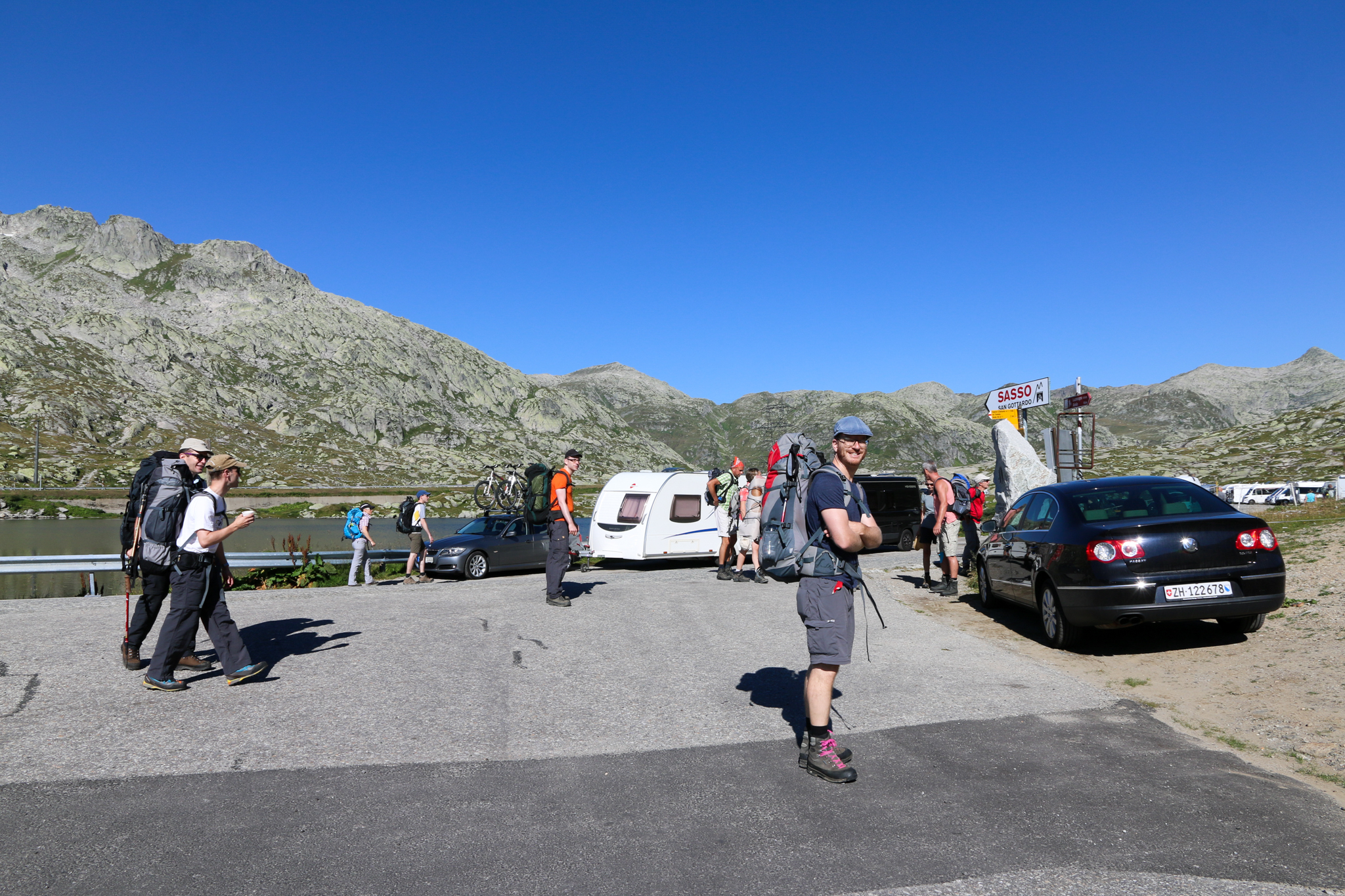 Ulti, Fux, Marc und Philipp beim Start am Gotthardpass (2090m).