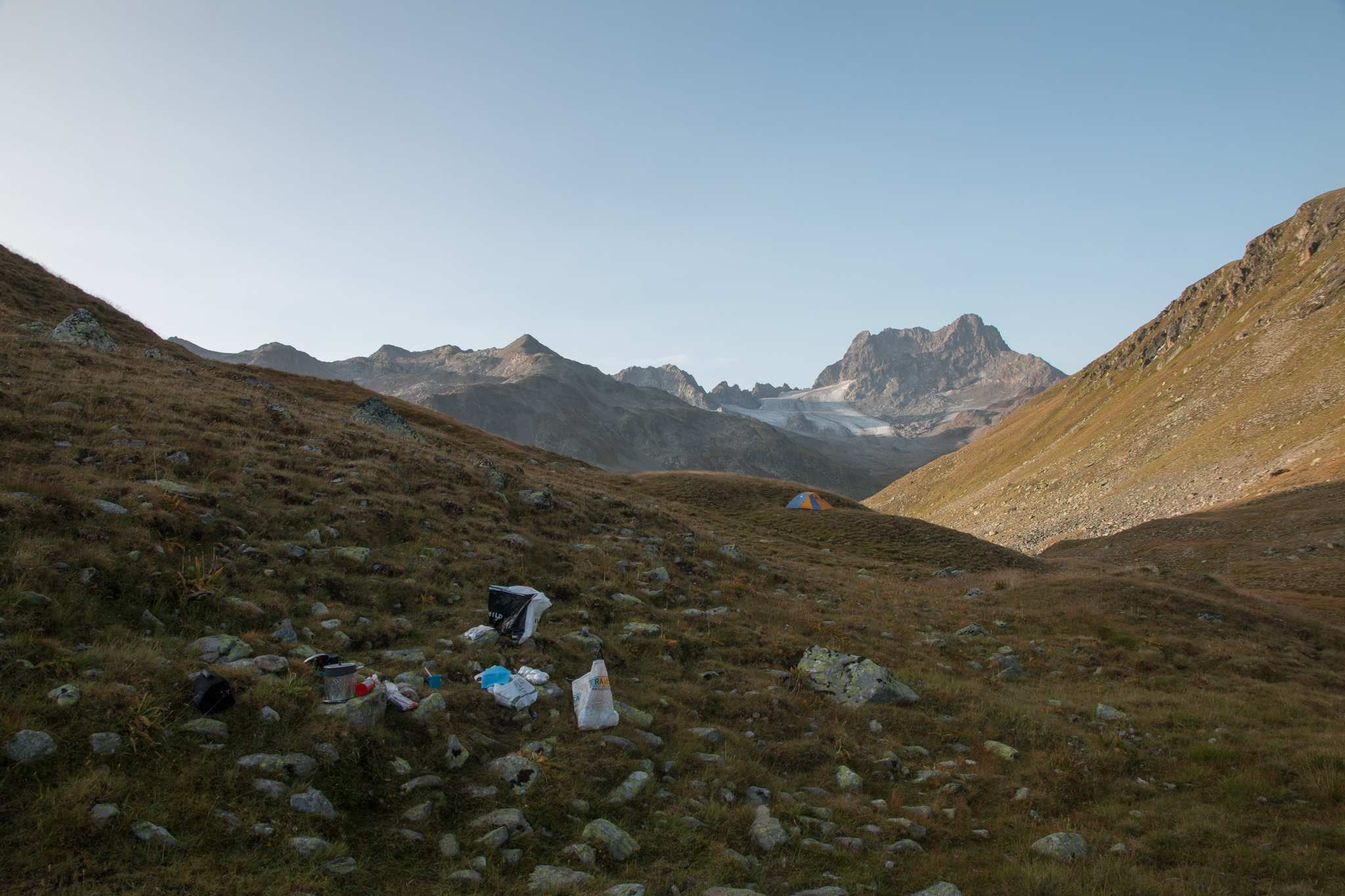 Morgensonne und Blick zum Piz Kesch.