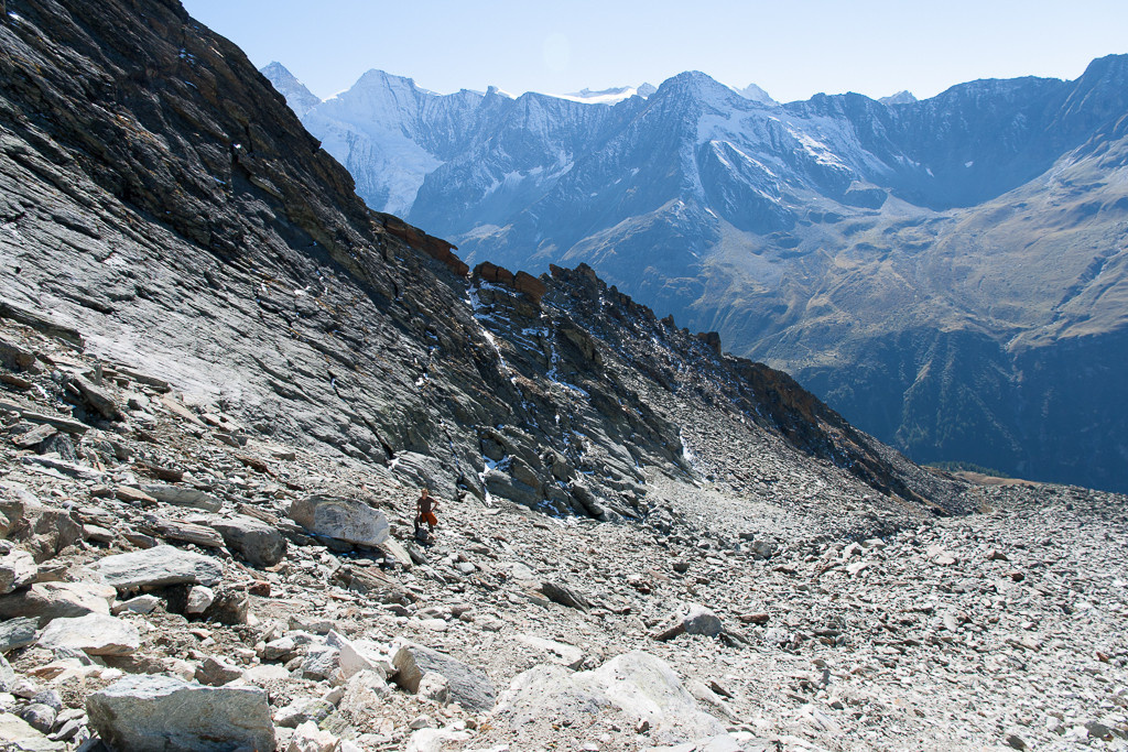 Die Westflanke vom Arpitetta ist eine steile Schutthalde.