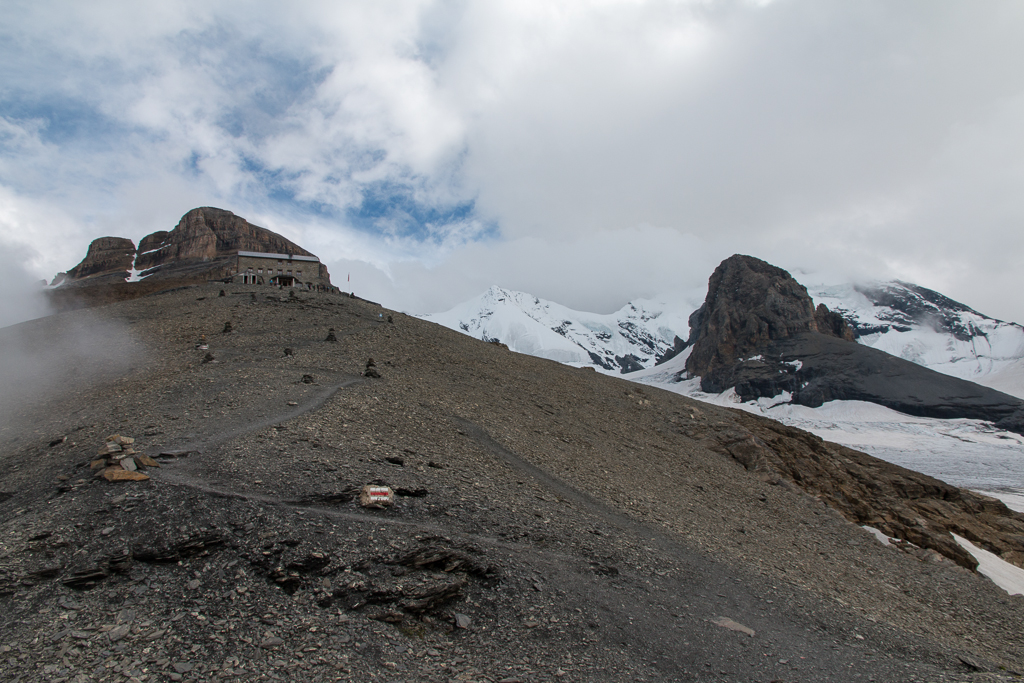 Blüemlisalphütte und Wyssi Frau (3648m).